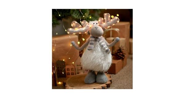 Новорічна м’яка іграшка Олень стане чудовою прикрасою під ялинку, у дитячу кімнату або як частина зимової композиції. Пухнастий красень у стильному білому вбранні та блискучій шапочці стане яскравим акцентом святкового інтер’єру. Олень здавна вважається символом шляхетності, мужності та перемоги над злом. Він уособлює прагнення до світла та здатність долати труднощі — ідеальні риси для святкового декору, наповненого змістом і теплом. Пухнасте біле тіло, сріблясті роги та смугастий шарф створюють милий образ героя зимових історій, який неодмінно сподобається і дітям, і дорослим. Особливу чарівність надають LED-роги, що м’яко світяться. Завдяки цьому оленя можна використовувати не лише як декор, а й як нічник. Приглушене світло створює спокійну атмосферу та стане чудовим «вартовим сну» для маленької принцеси або принца. Підсвітка працює від двох батарейок CR2032 (демонстраційні вже встановлені), а вимикач розташований на спинці оленя і непомітний ззовні. М’яка іграшка Олень у білому підніме настрій, створить атмосферу затишку та стане чудовим подарунком для друзів, близьких чи колег. Вона радуватиме вас рік у рік, стаючи частиною сімейної різдвяної традиції.