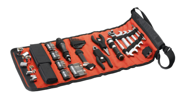 Комплектація: Насадки 25мм: Phillips 3 x Ph1, 3 x Ph2, 3 x Ph3 Pozidriv Pz1, 3 x Pz2, Pz3 Slotted 2 x Sl4, 2 x Sl5, 2 x Sl6, 2 x Sl7.2 Torx T10, 2 x T15, 2 x T20, T25 Насадки 50мм: Phillips Ph1, Ph2, Ph3 Slotted Sl4, Sl6, Sl7.2 Torx T10, T15, T20, T25 Шестигранні ключі: 12 Викрутка з храповиком: 1 Ріжкові ключі: 8-10, 10-13, 13-15, 17-19 Плоскогубці: 1 Круглогубці: 1 Розвідний ключ: 1 Торцеві головки: 6, 8, 10, 13, 15, 17, 19мм Адаптер головок: 1 Ключ з тріскачкою: 1 Телескопічний магніт: 1 Ліхтар: 1 Батарейки АА: 2