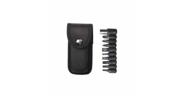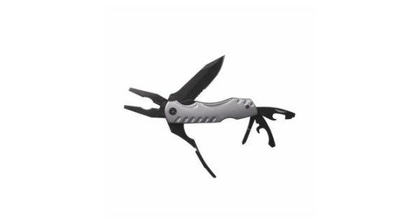Функції: Плоскогубці-кусачки, ніж, відкривачка для пляшок, консервний ніж, викрутка SL, тримач для біт. У комплекті також набір з 9 викруткових бітів.