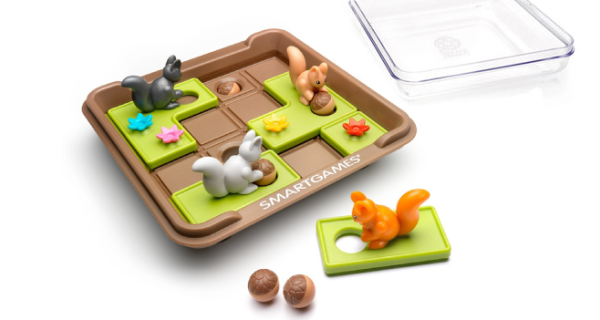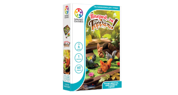 “Вперед, за горіхами!” - це розсувна гра-головоломка від виробника Smart Games з 60 захопливими завданнями, щоб перевірити твої навички.