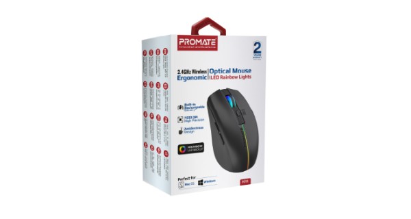 Kitt - невелика зручна мишка з RGB-підствіткою від Promate. Точне управління та 3-х місячний запас автономності роблять її очевидним вибором для щоденного використання.