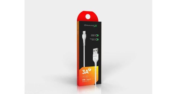 Нова модель кабелю Grand-X PC-03 з конектором TypeC стане чудовою заміною "рідному" кабелю для зарядки. Підтримка сили струму до 3А включно і стандартна довжина в 1 м дозволяє використовувати кабель PC-03 для зарядки будь-якої техніки (з використанням функції швидкої зарядки): смартфона, планшета або інший портативного девайса. Кабель постачається в двох кольорах – білий і чорний.