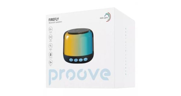 Дизайн Proove Firefly має компактний розмір і круглу форму, яка зручно поміщається в руці. RGB-підсвітка, що оточує колонку, додає веселої атмосфери та створює яскраву візуальну динаміку.