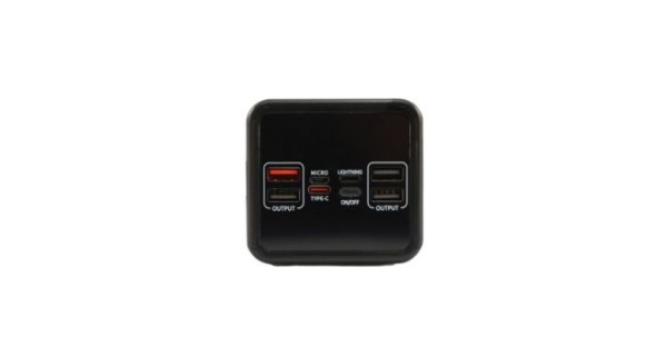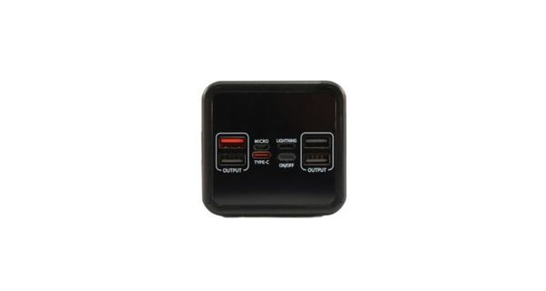 Характеристики: Матеріали: ABS-пластик Габарити: 14.8 х 7.1 х 6.6 см Кабель: Type-C Особливості: цифровий дисплей, ліхтарик, ремінець Порти: Output: 4хUSB; Input: Micro-USB, Type-C, Lightning Ємність батареї: 50 000 mAh Бездротова зарядка: ні Колір: чорний