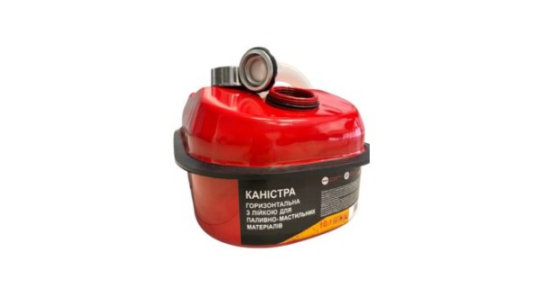 Горизонтальна каністра, в порівнянні з вертикальною, більш стійка і тому більш зручна для перевезення в багажнику і зберігання бензину, дизеля або масла. Також така форма більш зручна для власників квадроциклів, снігоходів і човнів. Каністра виготовлена з високоякісної сталі товщиною 0,8 мм і покрита зверху порошковою фарбою, яка стійка до відколів і розтріскування. Усередині нанесено спеціальний антикорозійний шар, який запобігає окисленню металу. Каністра не займає багато місця в багажнику, човні, її можна брати з собою на кемпінг, у подорожі і навіть походи. Для захисту каністри від ударів і пошкоджень передбачений спеціальний амортизаційний обід, розміщений по всьому периметру. Каністра закривається надійною кришкою, що закручується, зі стійкою до агресивних речовин гумовою прокладкою, що виключає просочування рідини і запаху. Для зручного перенесення вгорі каністри передбачена міцна зручна ручка. У комплекті додається гофрована лійка-труба для зручного виливання з каністри вмісту.