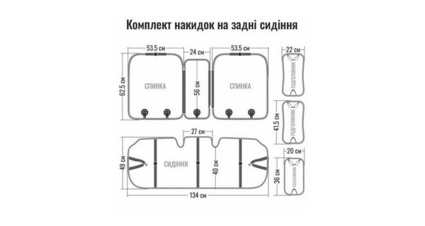 Комплектація (11 елементів): • передні сидіння: 2 елементи • задні сидіння: 4 елементи • підголівники: 5 елементів