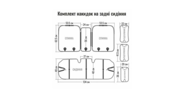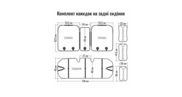 Комплектація (11 елементів): • передні сидіння: 2 елементи • задні сидіння: 4 елементи • підголівники: 5 елементів