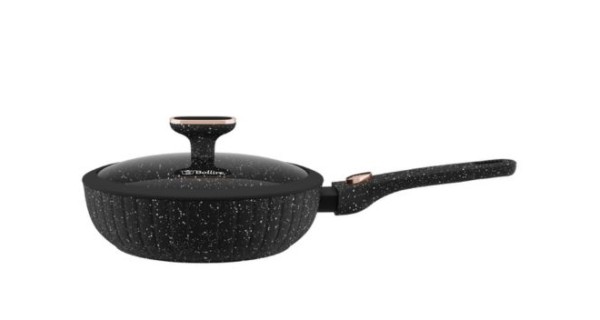 Посуд Bollire з мармуровим покриттям утричі кращий у плані антипригарних властивостей, на 50% більш стійкий до подряпин і вдвічі міцніший за аналоги. Має ковану алюмінієву основу в поєднанні з екологічно чистим та довговічним мармуровим покриттям усередині. Швидке нагрівання та утримання тепла дозволяє економити енергію, при цьому забезпечуючи ефективне та тривале використання. Чудові характеристики теплопровідності, збереження смаку та поживних речовин – все це дозволяє готувати чудові страви з неймовірним смаком та ароматом.