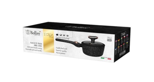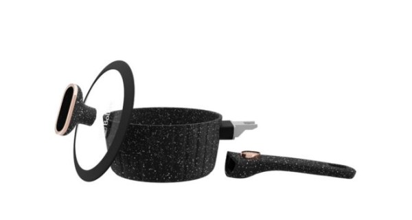 Внутрішня поверхня - з тришаровим зносостійким антипригарним покриттям Pfluon Marble, розрахованим на інтенсивне використання. Зовнішнє покриття - двошарове антипригарне Pfluon Marble, що полегшує догляд за посудом. Дно стовщене, індукційне, рівномірно розподіляє тепло. Ручка з бакеліту з покриттям Soft Touch та металевою вставкою - не нагрівається, приємна на дотик. Кришка з термостійкого скла з силіконовим обідком. Силіконовий обідок дозволяє кришці закриватися безшумно, запобігає пошкодженню при падінні.