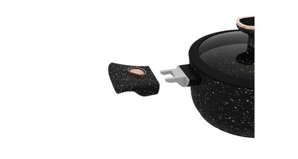 Каструля має ергономічні знімні ручки, що дозволяють використовувати її в духовці. Кришка з міцного прозорого термостійкого скла та чорною силіконовою ручкою дозволяє спостерігати за процесом приготування страви без необхідності піднімати її, а отвір для виходу пари перешкоджає появі конденсату та витіканню киплячих рідин на варильну поверхню при закритій кришці. Появі тріщин на краях кришки перешкоджає захисний силіконовий обідок.