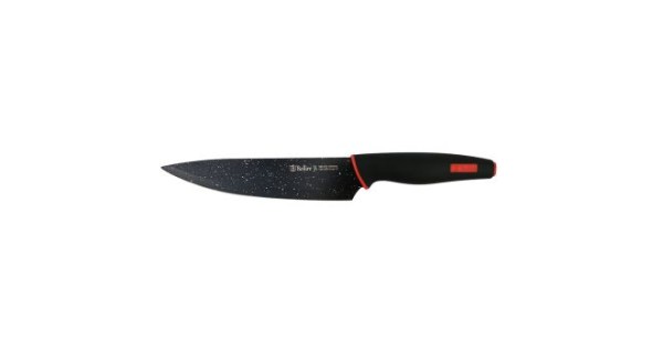 Ніж шеф-кухаря Bollire Milano, довжина 20 см. Кухонні ножі серії Milano виконані з високолегованої сталі, створеної азіатськими технологами, яким вдалося отримати матеріал із відмінними експлуатаційними характеристиками: Міцність, твердість, стійкість до зносу. Завдяки покриттю Graphite non-stick coating продукти не прилипають до леза при нарізуванні, а сталь максимально захищена від пошкоджень. Леза мають двостороннє симетричне заточування по всій довжині ріжучої кромки, що забезпечує легку нарізку та обробку. Ергономічна рукоятка забезпечує комфорт у процесі нарізки, стійка до ковзання та забезпечує безпечну роботу. Ручка із натурального чорного дерева. Картонна упаковка з віконцем та отвором для підвішування. Основне призначення такого ножа: кришити, різати та обробляти.