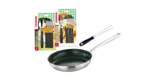 Додатково в комплект входить: набір виделок (6 шт.) Dinamik чорного кольору, набір ложок (6 шт.) Dinamik чорного кольору та виделка Control для нарізання.