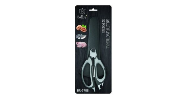 Ці кухонні ножиці BOLLIRE BR-3708 — незамінний помічник на кухні та в побуті. Вони виконують одразу кілька функцій: зручні для нарізання м’яса, слайсування, відкривання пляшок, очищення рибної луски, а також легко справляються з розколюванням горіхів. Гострі леза забезпечують точний і чистий розріз без зайвих зусиль. Ергономічні ручки з силіконовим протиковзким покриттям гарантують надійний хват і комфорт під час роботи. У комплект входить практичний чохол для зручного зберігання та безпечного перенесення ножиць.