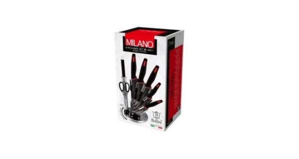 Набір ножів BOLLIRE Milano BR-6011 завжди стане в нагоді на кухні. У комплекті — сім кухонних аксесуарів: ніж для овочів, універсальний ніж, кухарський ніж, ніж для хліба, ніж для нарізки, ножиці та мусат. Ножі відрізняються розмірами й призначенням, при цьому виконані в єдиному стилі. Набір виготовлений із міцної та екологічно безпечної нержавіючої сталі. Ергономічні ручки зручно лежать у руці й не ковзають під час роботи. Леза гострі та легко заточуються за потреби. Вироби легко миються після використання — на це не йде багато часу. У наборі також є підставка для ножів та інших аксесуарів, що входять у комплект.