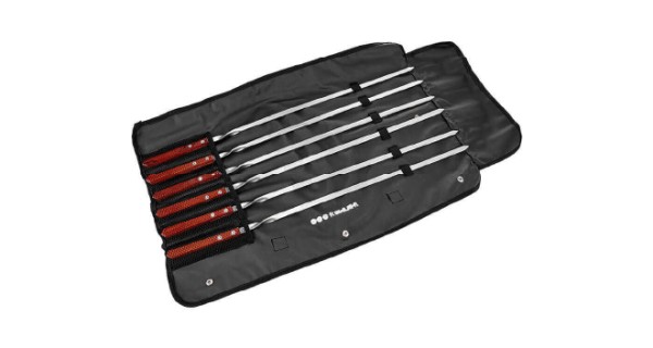 Ідеальний набір для будь-якого пікніка! Шампури оснащені дерев'яними ручками, що запобігає випадковим опікам і робить процес приготування зручнішим. У наборі є спеціальний чохол, який дозволяє зручно зберігати та транспортувати шампури.