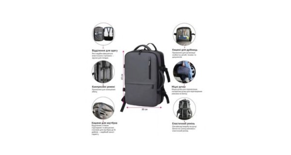 Функціональний рюкзак-сумка Nikibo Journey з відділенням для ноутбука — стильна та зручна модель, яка поєднує елегантність і практичність. Ідеальний вибір для роботи, подорожей чи навчання. Рюкзак має продуману конструкцію з об’ємом 20–30 л, що дозволяє зручно розмістити речі та замінити кілька моделей меншого розміру. Три великі відділення забезпечують ефективну організацію простору. Перше відділення оснащене кількома внутрішніми кишенями відкритого типу. Друге призначене для одягу — речі фіксуються стрічками, також передбачена велика кишеня для записника або книги. Зовнішні кишені на блискавках розташовані зручно: верхня — з вертикальною застібкою, нижня — з горизонтальною блискавкою, прикритою планкою.