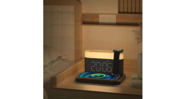 Функції: бездротова зарядка, нічник, будильник, сенсорне управління, регулювання