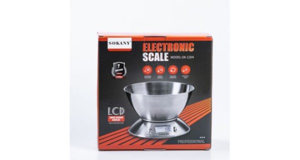 Ваги Sokany SK-1204 — це стильні та функціональні електронні ваги, які стануть вашим незамінним помічником на кухні. Їх максимальне навантаження — 5 кг, що робить їх ідеальними для зважування інгредієнтів для будь-яких страв. Ваги обладнані знімною чашею з нержавіючої сталі, що робить їх зручними для зважування сипучих продуктів, ягід, фруктів та овочів. Великий LCD-дисплей з чіткими цифрами забезпечує комфортне зчитування результатів вимірювань. Sokany SK-1204 мають низку корисних функцій: • Функція тари дозволяє зважувати продукти без урахування ваги чаші. • Автоматичне вимкнення через 1 хвилину бездіяльності. • Індикатор перевантаження спрацьовує, якщо вага продукту перевищує 5 кг. • Індикатор заряду батареї повідомляє про необхідність заміни батарейок.