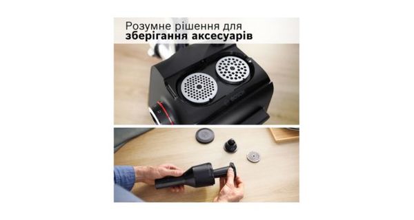М’ясорубка BOSCH MFWS440B – це надійний кухонний помічник для швидкого та якісного подрібнення м’яса, риби, сиру та інших інгредієнтів. Завдяки потужності 1900 Вт та продуктивності до 2,5 кг м’яса за хвилину ви заощаджуєте час і отримуєте відмінний результат. Пристрій оснащений двостороннім ножем із нержавіючої сталі, який гарантує точне й ефективне подрібнення. Два швидкісні режими дозволяють обрати оптимальний варіант для різних продуктів, а функція реверсу допомагає швидко усунути застряглі шматки м’яса без розбирання приладу. У комплекті передбачено 3 різні диски для фаршу, а для зручності всі аксесуари можна зберігати у вбудованому відсіку. Корпус м’ясорубки виконаний із міцного пластику, що забезпечує легкість і надійність конструкції. М’ясорубка BOSCH MFWS440B поєднує продуктивність, зручність у використанні та німецьку якість, роблячи процес приготування ще комфортнішим.