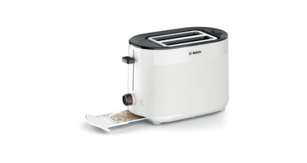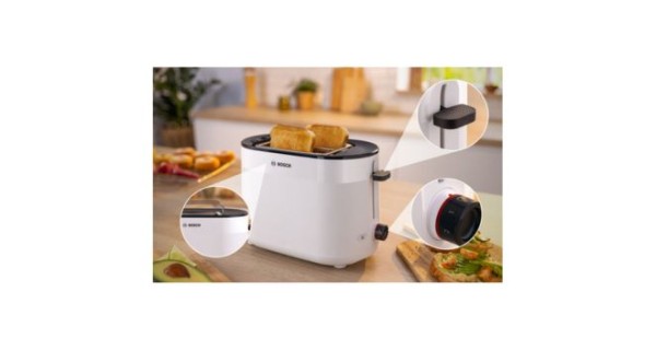 Тостер Bosch TAT2M121 — чудовий вибір для тих, хто шукає компактний і стильний тостер з сучасним функціоналом. Доступні режими розморожування, підігріву, регулювання підсмажування і система High-lift забезпечують комфортне і якісне приготування вашого сніданку. Простий в обслуговуванні, безпечний в експлуатації і виглядає дуже привабливо на кухні. Основні переваги: • Піддон для крихт знаходиться спереду, що полегшує процес очищення приладу. • Автоматичне центрування тостів для рівномірного підсмаження. • Легке підняття навіть невеликих шматочків хліба. • 6 режимів обсмажування для ідеального тоста.
