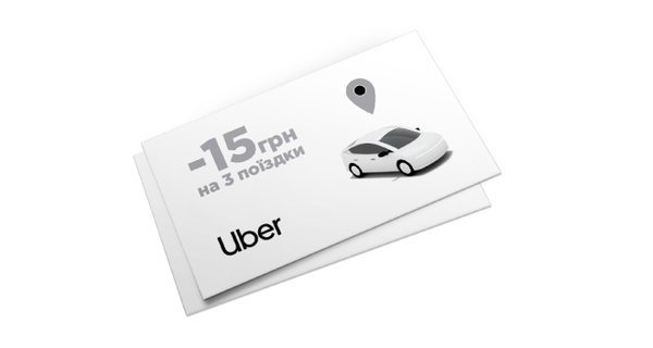 Промокод дає знижку 15 грн на кожну з 3-ох поїздок з Uber протягом 28 днів із моменту активації в особистому кабінеті.