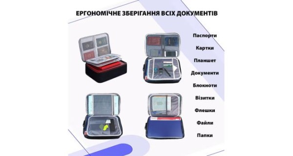 Сумка-органайзер для документів LoveYouHome — це портативне сховище для важливих документів, як для дому, так і для подорожей. Вона ідеально підходить для зберігання паспортів, сертифікатів, юридичних документів та інших важливих паперів. Цей органайзер надійно та впорядковано зберігає ваші документи, гроші, картки, USB-накопичувачі, ноутбук і сертифікати. Він допомагає тримати ці важливі предмети в безпеці та забезпечує легкий доступ до них у будь-який момент. Органайзер виготовлений із матеріалу типу оксфордського плетіння, що надає тканині міцності та водонепроникності. Це гарантує захист документів від негоди та пошкоджень. Зручність зберігання — ще одна перевага цього органайзера. Ви можете використовувати його вдома, в офісі, в автомобілі, у сейфі або шафі. Також його легко взяти із собою у подорож, у похід чи на заходи на відкритому повітрі. У разі екстреної евакуації ви зможете швидко взяти органайзер із собою.