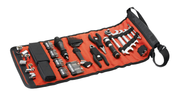 Комплектація: Насадки 25мм: Phillips 3 x Ph1, 3 x Ph2, 3 x Ph3 Pozidriv Pz1, 3 x Pz2, Pz3 Slotted 2 x Sl4, 2 x Sl5, 2 x Sl6, 2 x Sl7.2 Torx T10, 2 x T15, 2 x T20, T25 Насадки 50мм: Phillips Ph1, Ph2, Ph3 Slotted Sl4, Sl6, Sl7.2 Torx T10, T15, T20, T25 Шестигранні ключі: 12 Викрутка з храповиком: 1 Ріжкові ключі: 8-10, 10-13, 13-15, 17-19 Плоскогубці: 1 Круглогубці: 1 Розвідний ключ: 1 Торцеві головки: 6, 8, 10, 13, 15, 17, 19мм Адаптер головок: 1 Ключ з тріскачкою: 1 Телескопічний магніт: 1 Ліхтар: 1 Батарейки АА: 2