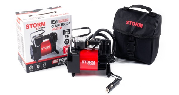 Автомобільний компресор STORM 20320 підійде для використання в легкових автомобілях з напругою бортової електромережі 12 В. Корпус компресора виготовлений з комбінації металу і пластика. Зверху встановлена надійна транспортувальна ручка. Максимальний тиск, який здатний видавати даний компресор, становить 10 Атм, якого цілком достатньо для побутових цілей. Характеристики: