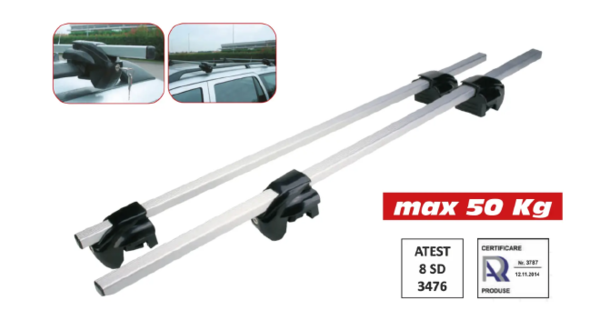 Багажна система, яка виготовлена зі сталі, монтується на будь-які стандартні рейлінги з просвітом. Швидко й легко кріпиться, що дозволяє за необхідності перемістити поперечини в потрібний бік, змінюючи відстань між ними. Профіль прямокутний, довжина кріплення становить 120 см. Максимальне навантаження - 50 кг. Фіксується за допомогою ключа. Підходить для встановлення додаткових фіксаторів для перевезення спортивного інвентарю, вантажних боксів та інших вантажів. Багажник універсальний та сумісний з більшістю марок автомобілів. У комплекті йде все необхідне для установки на авто.