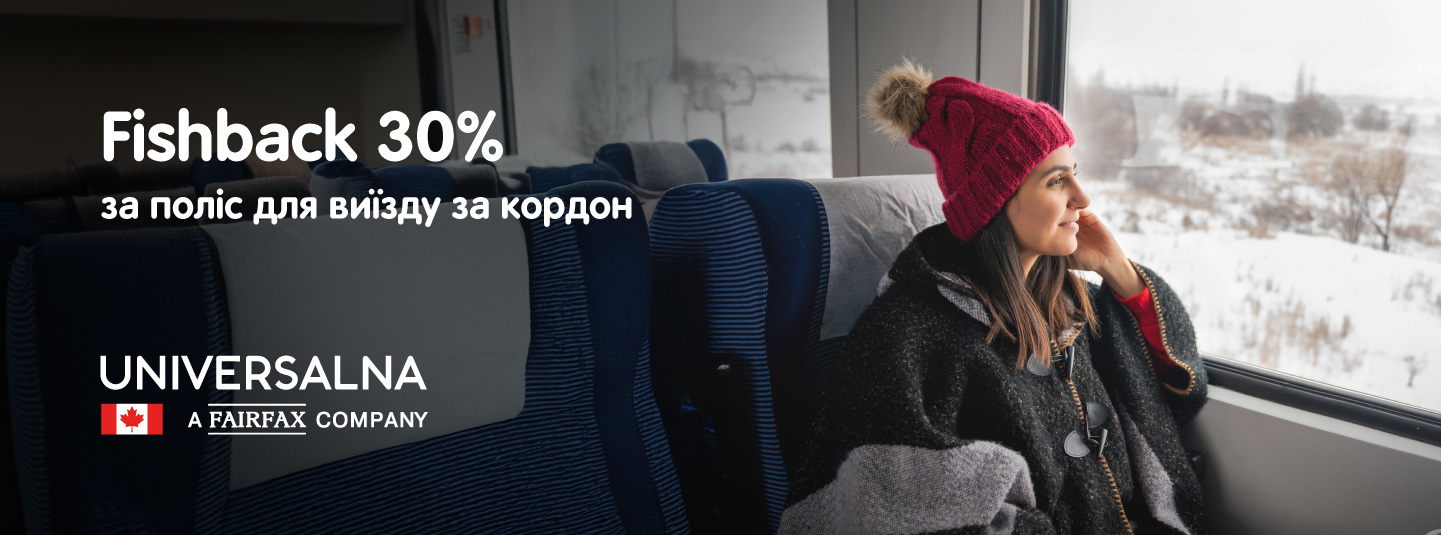 Купуйте поліс страхування подорожуючих за кордон на промосторінці UNIVERSALNA та отримуйте Fishback 30% балами на ваш рахунок.