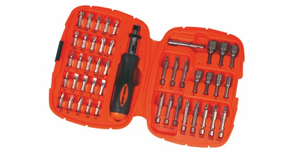 Набір Black+Decker A7039 з 45 аксесуарів містить ручну викрутку з реверсивним механізмом в комплекті з широким асортиментом викруткових і накидних насадок для виконання найбільш поширених операцій по закручуванню і викручуванню. Комплектація: