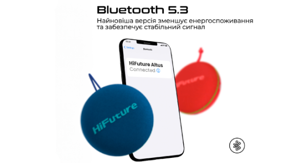 HiFuture Altus – мініатюрна Bluetooth колонка потужністю 5W. Завдяки своїй легкості та вологозахисту вона чудово підійде тим, хто займається спортом або веде активний спосіб життя.