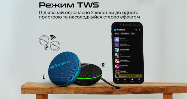 • Функція TWS (True Wireless Stereo): підключайте одночасно 2 колонки до одного пристрою та насолоджуйтесь стерео ефектом.