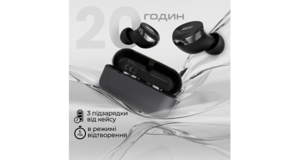 • Bluetooth 5.2: з функцією динамічної оптимізації потужності, зменшує енергоспоживання й робить сигнал ще більш стабільним. • Відмінний звук: сучасний чіп Bluetooth у парі з якісними динамічними випромінювачами, забезпечують глибоке та збалансоване звучання на всьому діапазоні частот. • Шумозаглушення ENC: фірмова технологія CVC 8.0 від Qualcomm гарантує кришталево чисту якість передачі голосу без зайвих перешкод. • 20 год. автономної роботи: Yacht будуть програвати музику 5 год., а за допомогою кейса ви зможете їх підзарядити до 3 разів. • Ергономічний дизайн: легкі вакуумні навушники анатомічно правильної форми. Вони зручно лежать у вусі та не викликають дискомфорту навіть після тривалого використання. • Функція швидкого заряджання: просто покладіть навушники на 15 хв. у кейс і насолоджуйтесь музикою цілу годину. Сам кейс заряджається через USB-C порт за 1,5 год. • Компактний кейс-акумулятор: витончений кейс із матового металу, стійкий до подряпин та надійно захищає твої навушники. • Захист за стандартом IPX5: завдяки спеціальній конструкції Yacht захищені від бризок, дощу, пилу та піску, а тому ідеально підходять для використання в будь-яку погоду. Повністю занурювати у воду не рекомендується. • 1 або 2: навушники повністю автономні, ви можете використовувати один з них як гарнітуру, поклавши інший в кейс, без додаткових налаштувань. • IntelliTouch управління: сенсорні кнопки дозволяють відповідати на дзвінки, ставити музику на паузу, регулювати гучність, перемикати треки та викликати голосового помічника. • Широка сумісність: ґаджет повністю сумісний з усіма пристроями з підтримкою Bluetooth будь-яких версій.