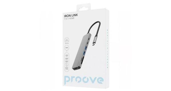Дизайн Proove Iron Link 7 in 1 має компактний дизайн, що дозволяє легко помістити його в рюкзак або кишеню. Хаб дає змогу під'єднати флешку, зовнішній жорсткий диск, мишу, клавіатуру чи інші пристрої з USB-конектором.