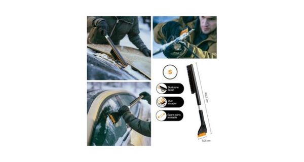 Щітка-скребок коротка Fiskars Plus S, 63 см (1078495) — надійне рішення для якісного догляду за вашим авто. Коротку щітку-скребок Fiskars Plus використовують для очищення автомобіля від снігу та льоду без шкоди для поверхні. Вона виготовлена з високоякісних матеріалів, стійких до перепадів температур, що забезпечує тривалий термін служби. Інструмент має компактні розміри та поєднує щітку й скребок, що робить його універсальним у використанні та зручним під час транспортування або зберігання. Скребок із міцного матеріалу ефективно видаляє лід і намерзлий сніг, а м’який ворс щітки дбайливо очищає кузов чи вікна від снігу та пилу, не залишаючи подряпин, а міцний алюмінієвий вал забезпечує довговічність та надійність. Особливості: оптимізовані двозонні щетинки, подвійний скребок Duo scraper (жорсткий для льоду, м'який для води/сльоти), замінні зношувані частини.