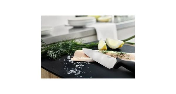 Серія кухонних ножів Essential розроблена для того, щоб бути практичними й водночас доступними. Міцне лезо виготовлене з високоякісної японської нержавіючої сталі, твердість за шкалою Роквелла — HRC 53. Ергономічна ручка забезпечує комфортний захват, що дає змогу контролювати ніж під час роботи та зменшує втому руки.