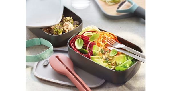 Набір складається з 2 контейнерів з кришками і з'єднувальної гумки. Контейнери виготовлені з якісного пластику, гумка- з силікону. В кришках контейнерів є спеціальні отвори для виходу пари, завдяки яким при використанні у мікрохвильовій печі знімати кришку не обов'язково. Місткість кожного контейнера - 0,8 л. Рекомендується тільки ручна мийка.