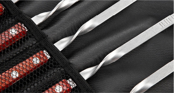 Ідеальний набір для будь-якого пікніка! Шампури оснащені дерев'яними ручками, що запобігає випадковим опікам і робить процес приготування зручнішим. У наборі є спеціальний чохол, який дозволяє зручно зберігати та транспортувати шампури.