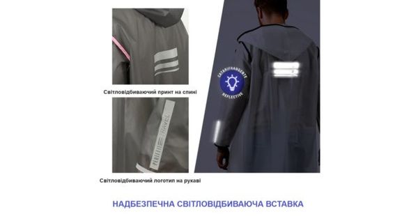Безпека: Для посилення безпеки плащ має світловідбиваючі деталі на спині та рукавах, які роблять вас помітним у світлі фар.