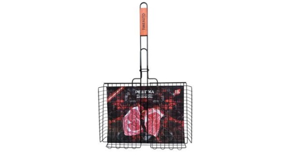 Решітка для гриля та барбекю на якій можна легко і швидко приготувати м'ясні стейки, рибу та овочі на мангалі. Завдяки антипригарному покриттю продукти не пригорають до ґрат. Зручна ручка із дерев'яною вставкою не нагрівається. Завдяки надійній фіксації та притиску продукти прожарюються рівномірно, а цікава форма переплетення прутів надасть дуже апетитного вигляду готовій страві.
