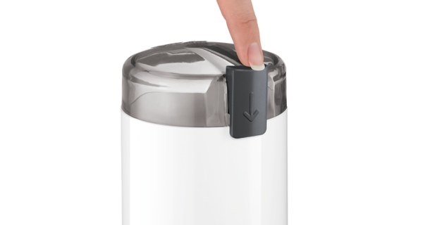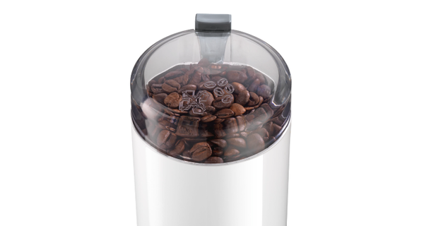 Колір корпусу: білий • Потужність: 180 Вт • Швидкісні режими: 1 • Функціонує лише із закритою кришкою • Для зерен кави • Ніж та млин з нержавіючої сталі • Кнопка безпечного вмикання • Об'єм камери помелу: 0,2 л • Камера для завантаження: 75 г зерен • Кришка кавомолки придатна для миття в посудомийній машині • Розмір: 17 х 9 х 9 см
