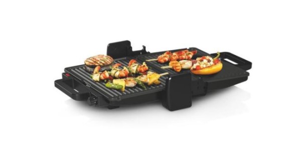 Характеристики: Тип: гриль-контактний Вид: закритий Керування: механічне Поверхня: ребриста Потужність: 2000 Вт Розмір пластин: 31×22см Вага: 3,7 кг